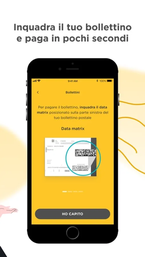 L'app Mooney ti consente di pagare col cellulare i servizi convenzionati direttamente con la fotocamera del tuo smartphone, scansionando uno dei due codici presenti sui bollettini. Puoi anche pagare dall’app, inserendo manualmente i dati richiesti. Pagare bollette (come luce, gas e altro), multe e bollettini postali diventa più veloce e facile.