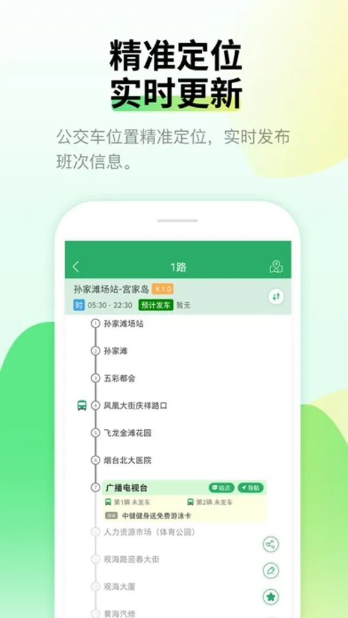 “烟台公交”为烟台市区的公交乘客提供最便捷的出行指南,主要功能包括:实时公交位置查询,线路和站点查询,换乘路线查询,公交资讯浏览等。