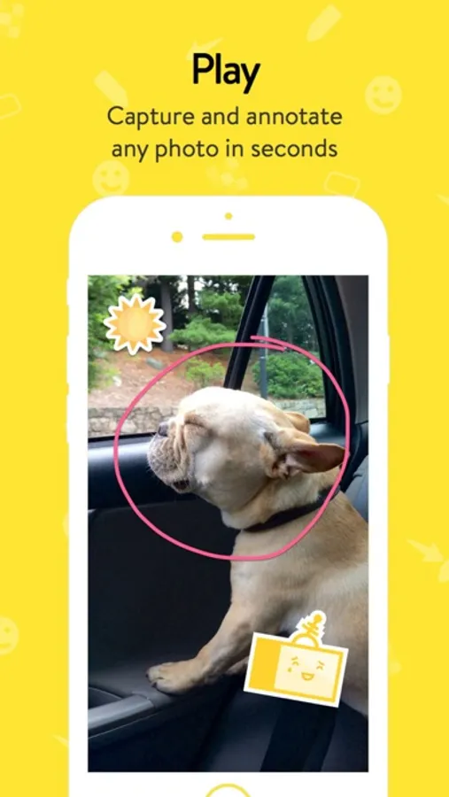 Snap a photo or select an image from your camera roll, then dress it up with stickers and annotate it with arrows, text, and the pen tool. Or use the pixelate tool and built-in emojis for maximum impact.
