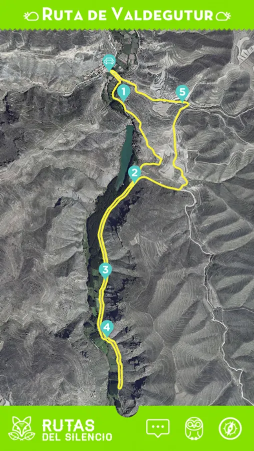 Te guiará durante el recorrido ubicando tu posición en la ruta y mostrándote los puntos donde se realizan las diferentes locuciones que interpretan el entorno más natural además de que no te puedas perder.