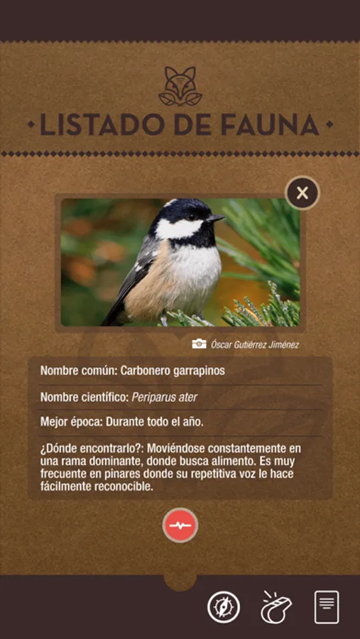 La Aplicación está interpretada y te acercará los sonidos de la naturaleza, te mostrará los animales que te puedes encontrar durante el recorrido, los sonidos que emiten, sus costumbres o donde encontrarlos.