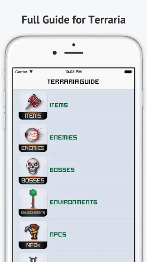 "Ultimate Guide for Terraria Pro" contains a full strategy guide giving you tips and tricks on bosses, items, enemies,NPCs, mechanics,....