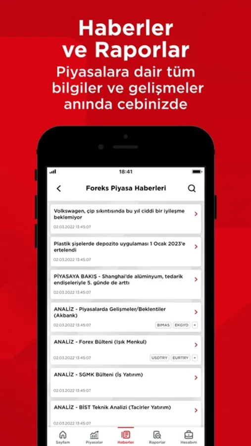 KAP ve Foreks Haberlerini anlık olarak izleyebilirsiniz, haberler arasında arama yapabilirsiniz. Ziraat Yatırım tarafından hazırlanan araştırma raporlarına ulaşabilirsiniz.