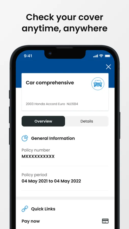 View your policy information and documents in the app. You can see what you’re covered for at any time. And choose to get your insurance documents by email or by post.
