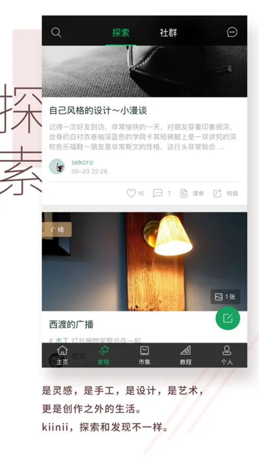 Kiinii App is such a craft and design sharing community that lets the story of the creator enter the lives of the viewer, lets dreamers and practitioners collide, and shares each other's creations, inspirations, topics, pieces of memory... and attitude sourattitudes towards life.