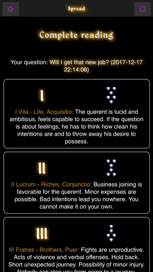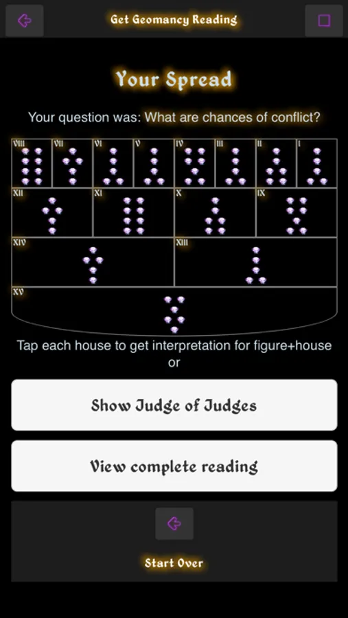 This app will do its' best to let you peek into your positions and opportunities regarding geomantic reading you provide while concentrated on a specific matter, subject or situation. Remember, the purpose of Geomancy is to give advices, shed new light on misty occasions and help you make decisions, not to tell you the future. Used properly, Geomancy can be your very reliable guide in everyday life or during important turnovers.