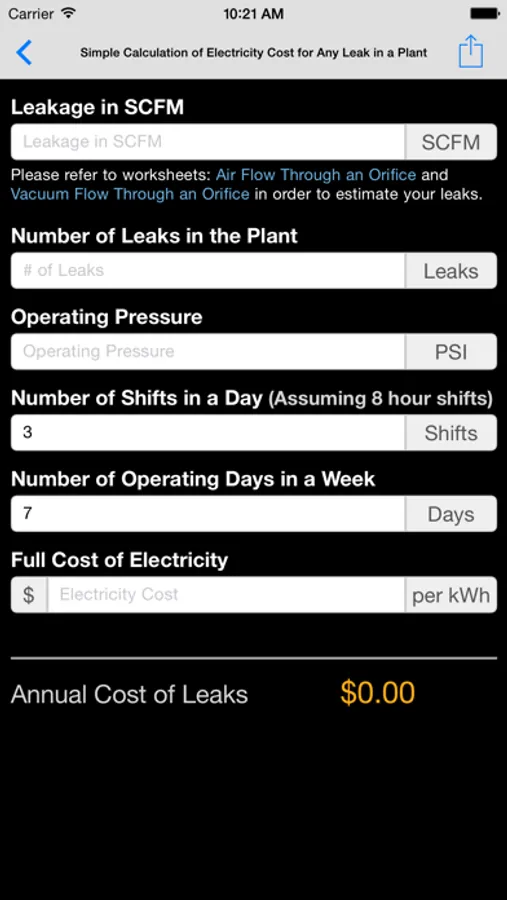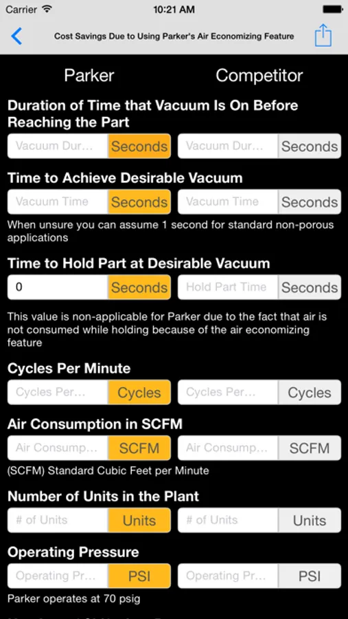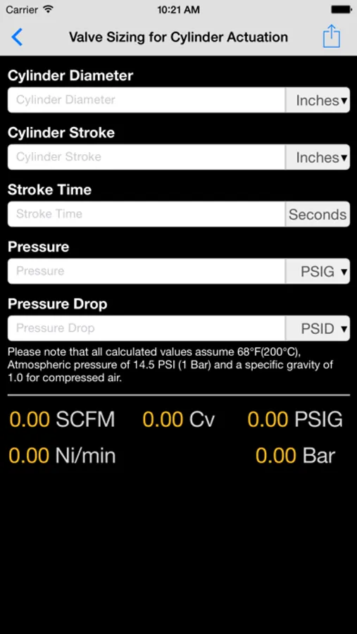 The purpose of this iOS application is to provide users and designers of pneumatic systems with a handy collection of compressed air cost calculators, conversion tools and air valve (Cv) and flow (CFM) calculation for air cylinder actuation.