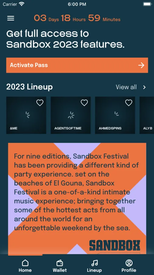 The SANDBOX Festival App by Nacelle is a one-stop-shop for all the info and news you will need for the festival. Use your SANDBOX Festival App to activate your pass, monitor your transactions and keep track of everything your need to know regarding SANDBOX.