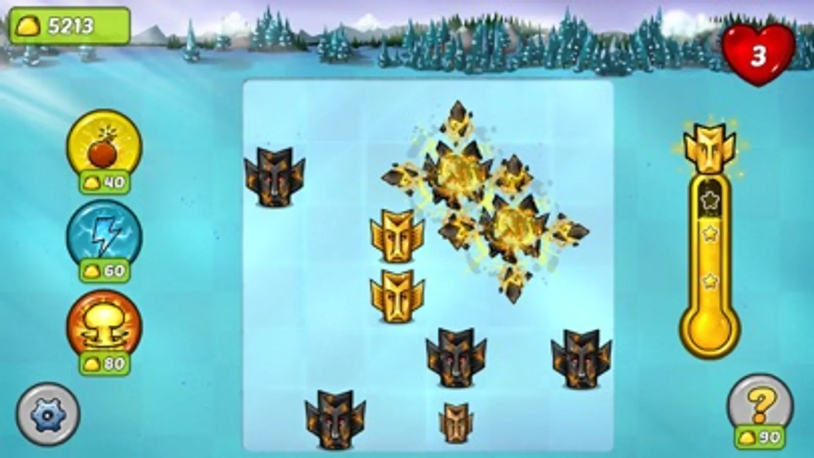 Travel to ancient jungle in mayan forest and clear it from the hostile totems. Tap on the black lava totems to destroy them and trigger chain reaction. You can finish every level with just one chain reaction to aquire Aztec Gold Totem.