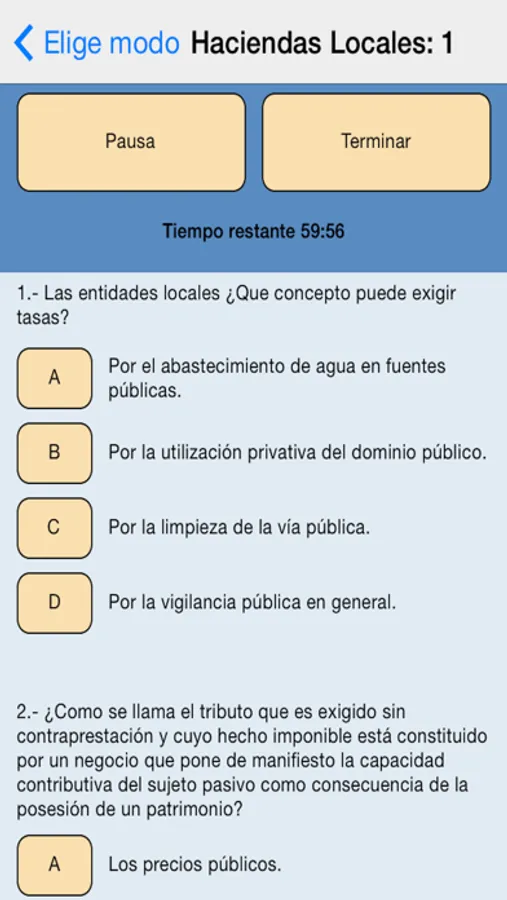 - Dos modos de realizar un mismo test (modo de respuesta instantánea o modo examen).
