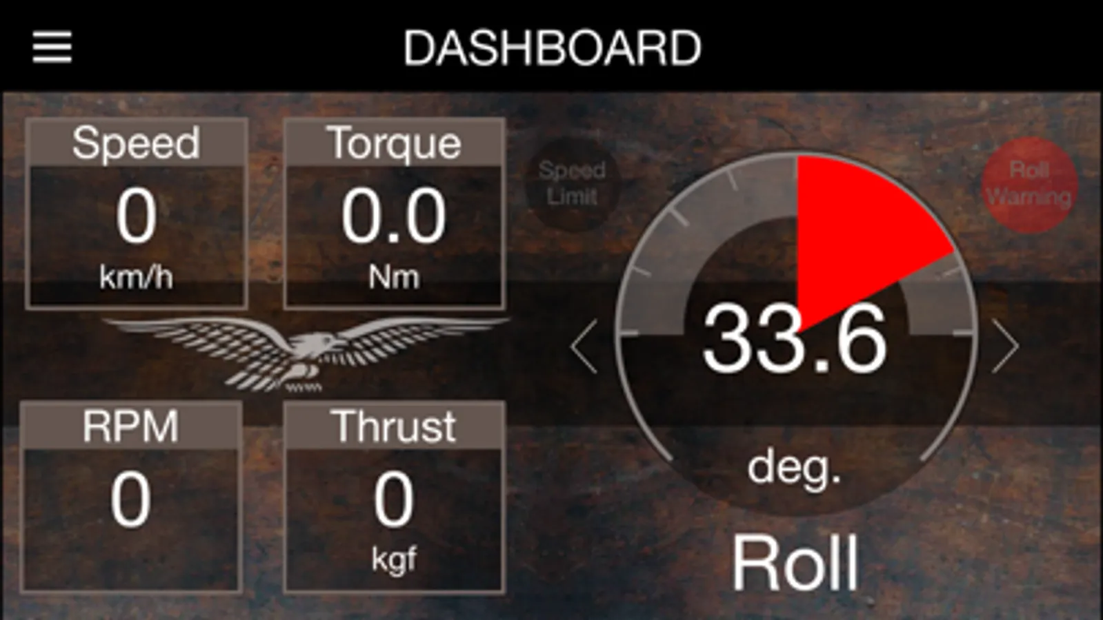 You can set specific thresholsd for speed, rpm and roll angle. Dedicated warning lights are activated if the limits are excedeed.