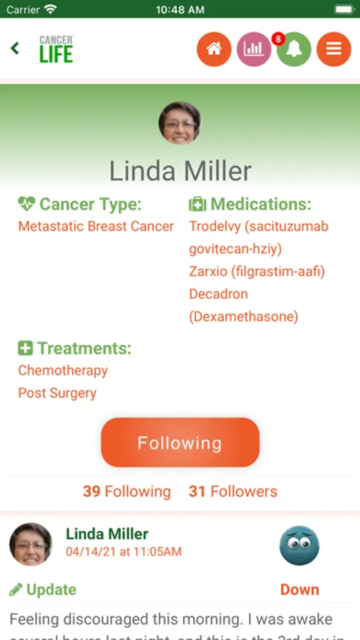 Cancerlife is the only consumer app that is clinically validated in a randomized control trial sponsored by John Wayne Cancer Institute to raise quality of life by 14.3%. Our platform allows patients to share their health status with other patients and get social support using a form of cognitive behavioral therapy that improves quality of life. Any patient regardless of location can use CancerLife to take control of their care and improve their mental and physical health. There are many cancer apps but none that have been validated to actually raise quality of life like CancerLife.