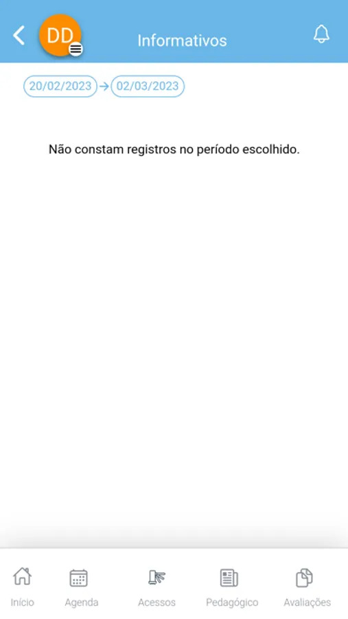 • Consulta Pedagógica com a possibilidade de filtrar por período da ocorrência. Envio de notificação no caso de nova informação pedagógica (ocorrências).