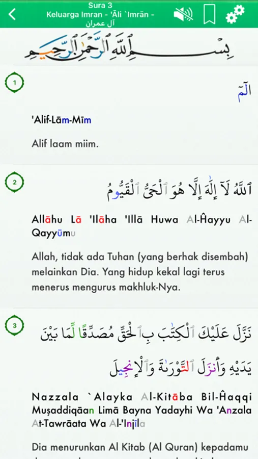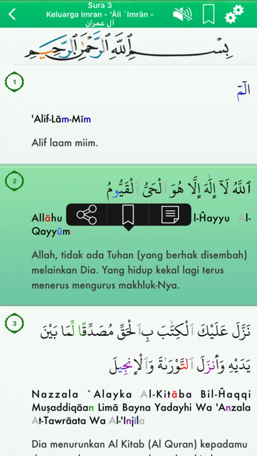 - Bookmark otomatis untuk setiap surah