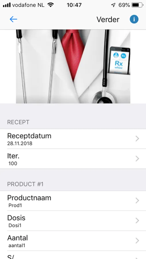 The app remembers all previous data entered and thus easily builds a handy list of all your patients and prescribed medicines. When entering data, the app automatically presents an alphabetical list of all previously entered data. This saves you a lot of time.