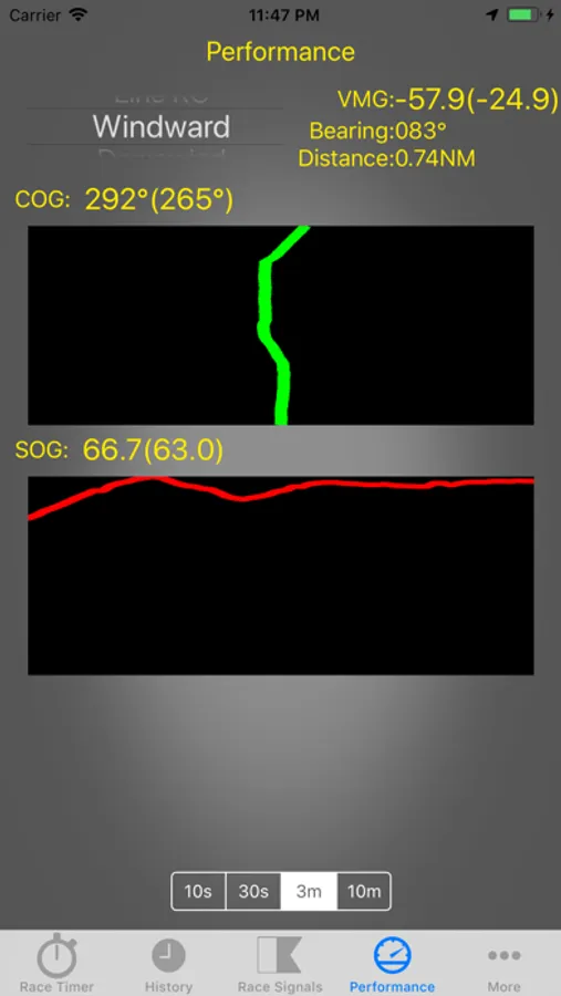 * History plot of Course and Speed Over Ground that allow you to track wind shifts