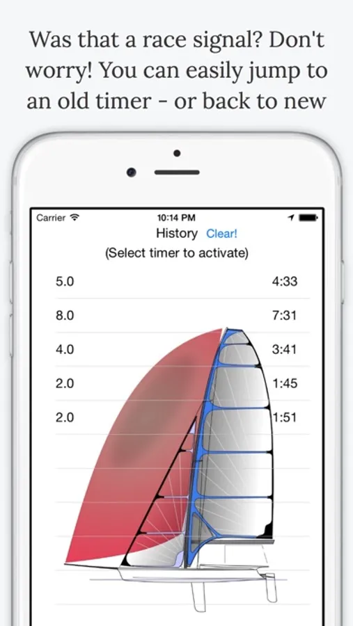 This app provides a timer, speed and course monitoring with unique features and unparalleled ease of use for sail racing. When you hear or see a race signal just press Gun! - You can adjust if it is a 5, 4 or 1 minute warning afterwards! And if it was just a loud noise from a flapping sail and not a race signal you can easily jump back to the previous timer.
