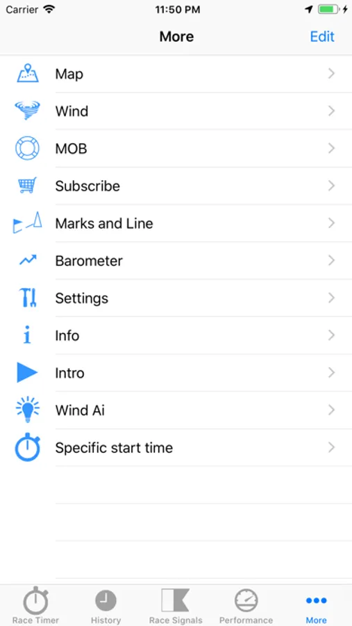 The app provides limited HealthKit integration and can optionally start a Sailing Workout activity during race start.