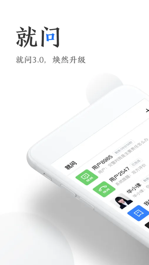 就问律师专注于付费法律服务,让律师的价值能够得到更多的体现。同时优化了产品体验,让律师能够通过订单的模式选择性接单,根据自己的碎片时间处理当事人的法律咨询。