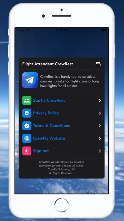 CrewRest is a simple airline crew rest/break application/calculator for determining rest periods for flight attendants on long-haul international flights.