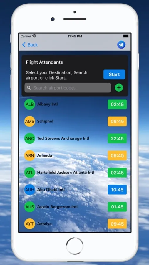 - Pre-installed with over 100 major Destinations to immediately determine timezones to start a crew rest calculation.