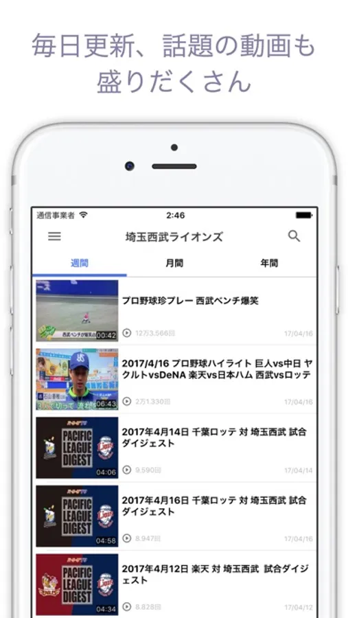 - 下方向へのスワイプ動作で西武の情報が更新できます。