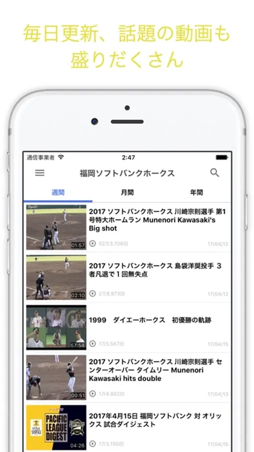 - 下方向へのスワイプ動作でホークスの情報が更新できます。