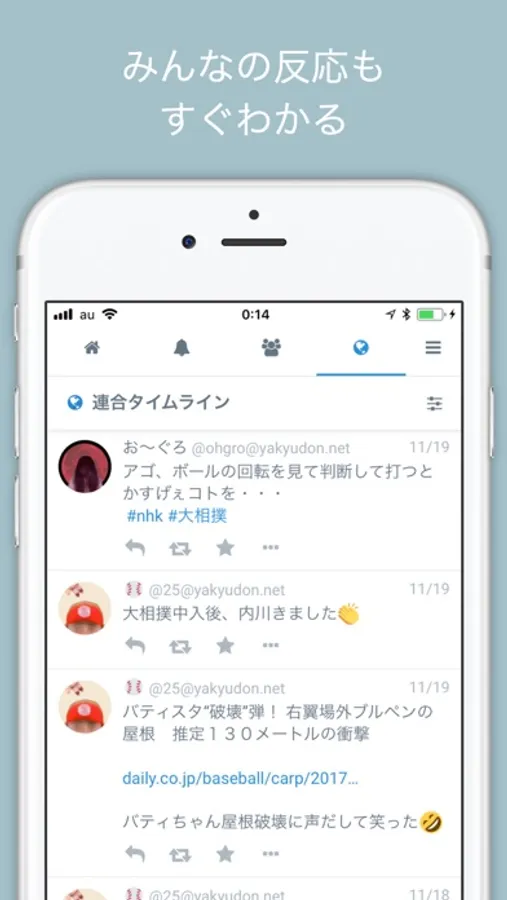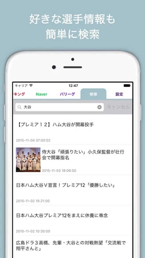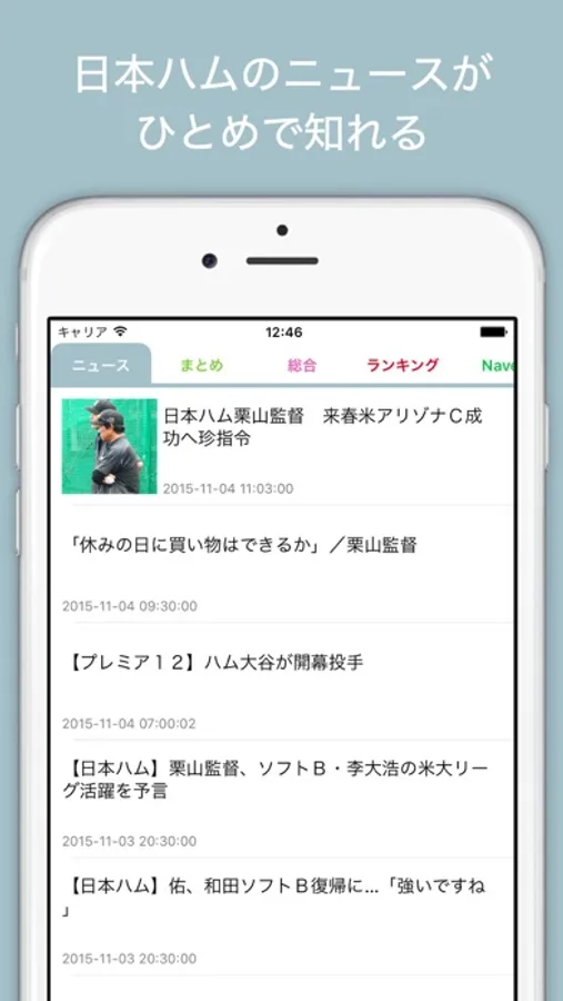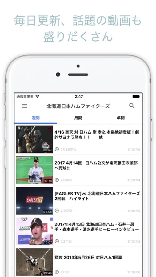 - 下方向へのスワイプ動作で日本ハム情報が更新できます。
