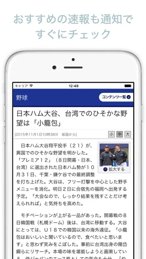 プッシュ通知によりおすすめのニュースを知ることができます。