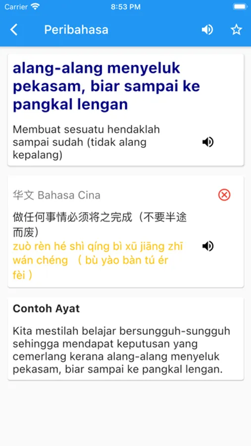 This is a free Malay Idioms (peribahasa & simpulan bahasa) Dictionary app.