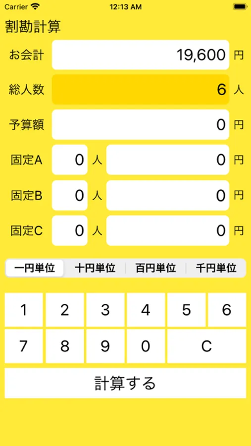 割り勘計算ができるアプリケーションです。