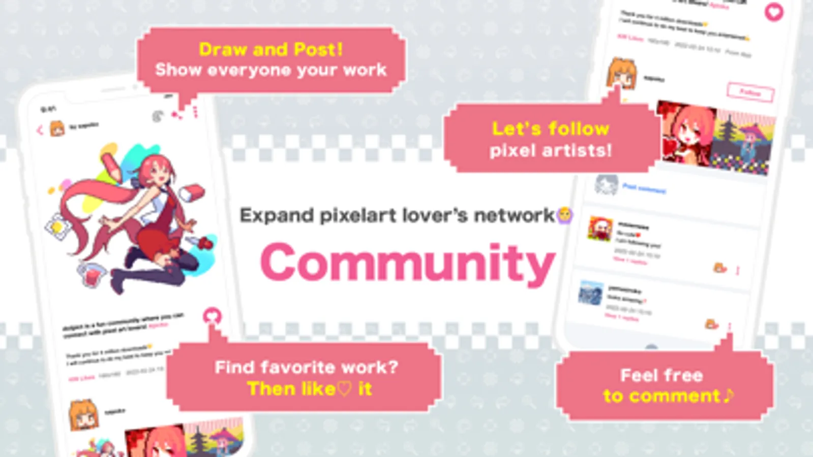 "dotpict" has a community function that allows you to post pixelart drawn with dotpict as well as those drawn with other applications!