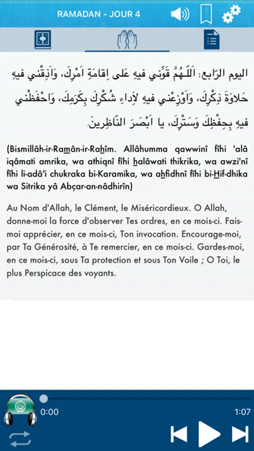 => Les invocations spécifiques à chaque jour du mois de Ramadan au format Audio en Arabe et Texte en Français, Arabe et Translittération (Transcription) Phonétique