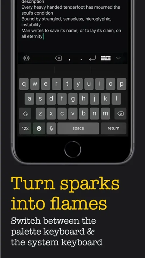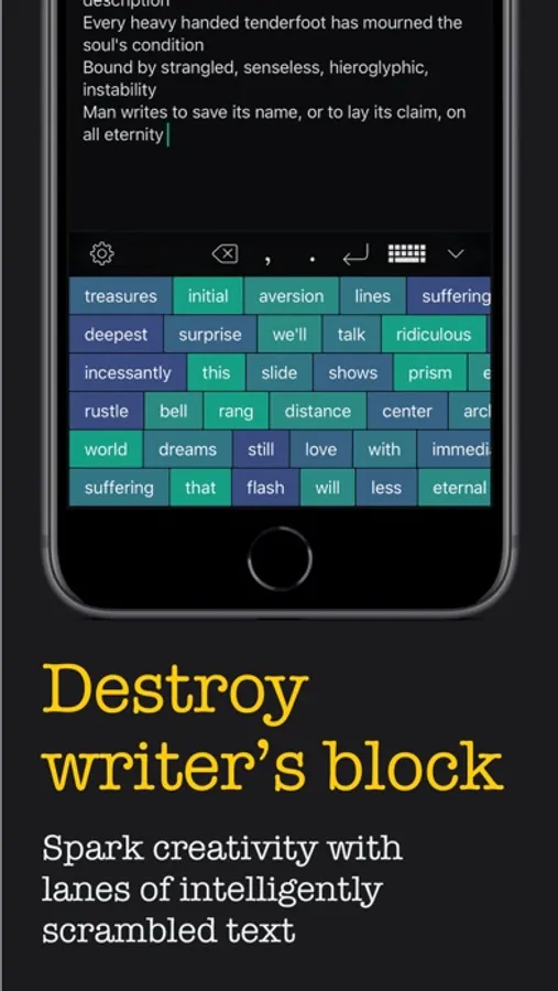 - Use the sliders to amass a collection of words that resonate with you, then switch to the default keyboard and weave them together.