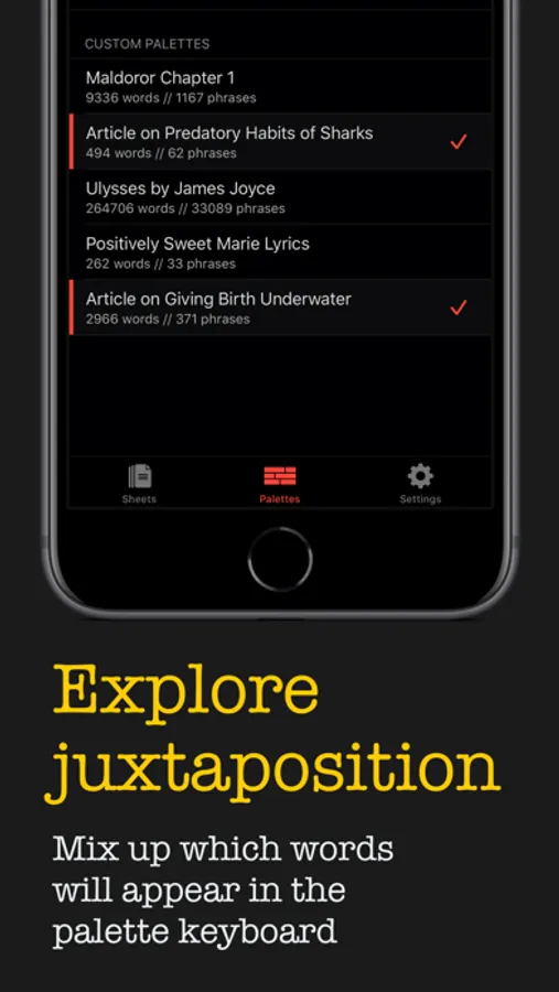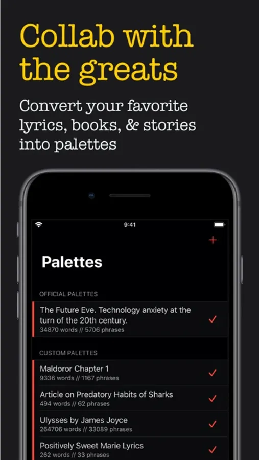 〰 Import your favorite text sources and convert them into Palettes.