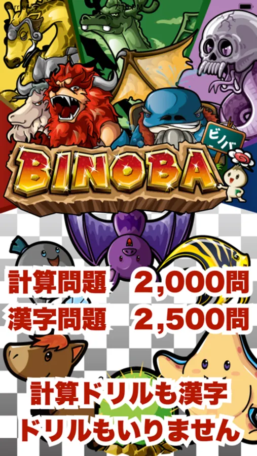 何度も反復して復習が必要な「計算」と「漢字」に特化したアプリです。もちろん、ビノバらしい楽しさがあるので、毎日繰り返し勉強しても飽きにくいです。計算と漢字合わせて、約4,500問を収録。他の学習アプリとは圧倒的にボリュームが違います。