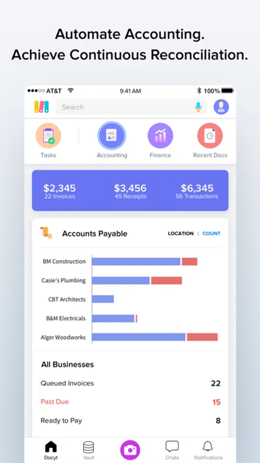 Docyt is used by small businesses, businesses with multiple corporate entities, solo bookkeepers, and large accounting firms to speed up their accounting workflows while saving time and money. Docyt is the ultimate app to run your back office.