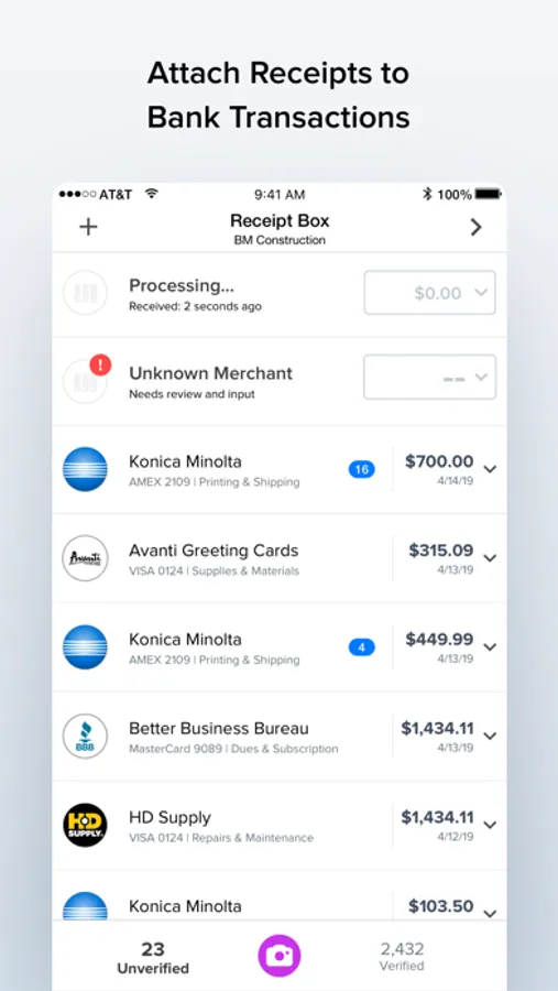 Scan, snap, or email your receipts. Docyt will leverage AI to automatically extract information from the receipt and reconcile it with your bank and credit card transactions.