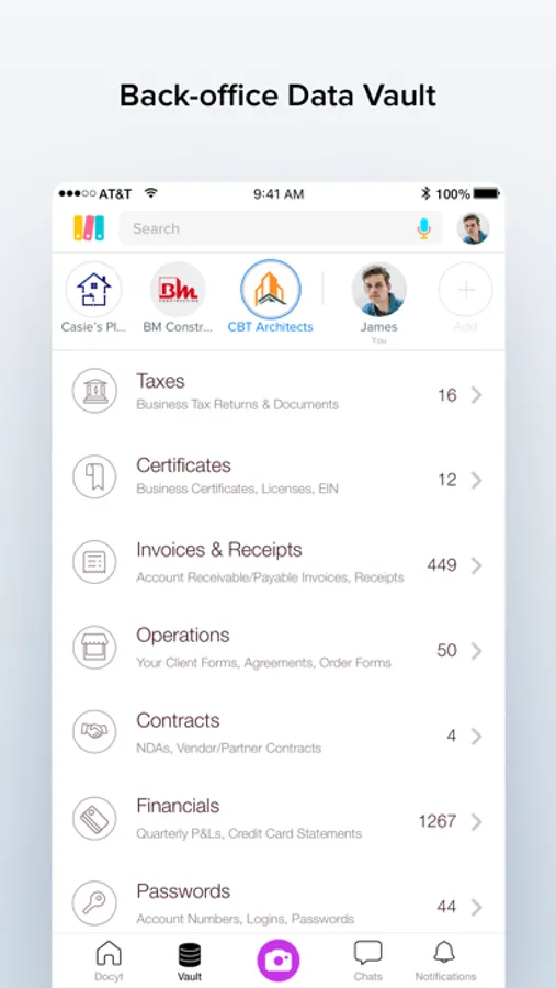 Enjoy Docyt’s tightly integrated accounting, collaboration, and document sharing and storage solution.