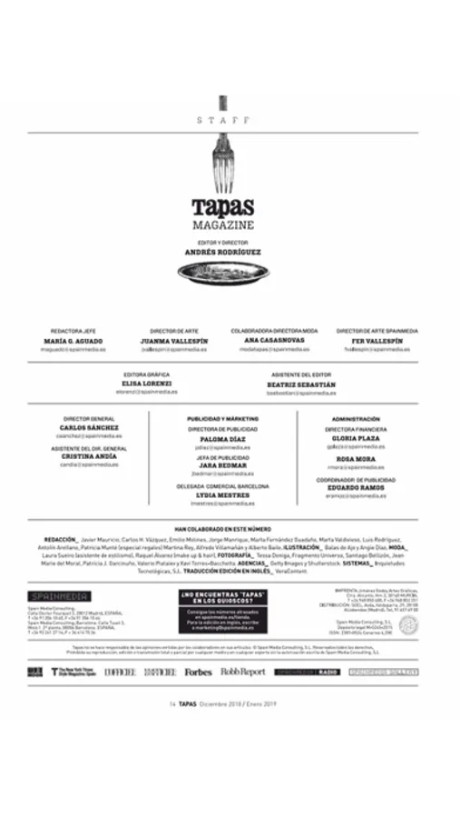 Llega TAPAS MAGAZINE, la primera revista gastronómica y lifestyle de SPAINMEDIA. Una revista cocinada a fuego lento, fácil de digerir. Explicamos cómo funciona nuestro planeta a través de la relación cotidiana con la bebida y la comida. Lo haremos en español y en inglés, porque TAPAS es una palabra global, porque se trata de una de las grandes aportaciones de nuestra cultura gastronómica al mundo. En definitiva:cocinamos mes a mes, con mucho esmero, una revista para comérsela.