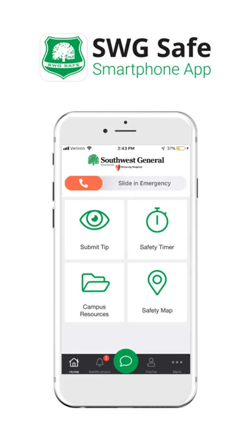 If you're in a dangerous situation, use the SWG Safe application to quickly and easily contact Hospital safety forces.