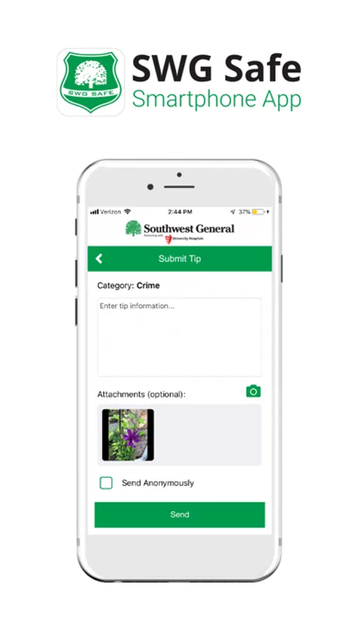 -Send text messages, as well as photos and videos of crime tips and suspicious behavior directly to university safety forces.
