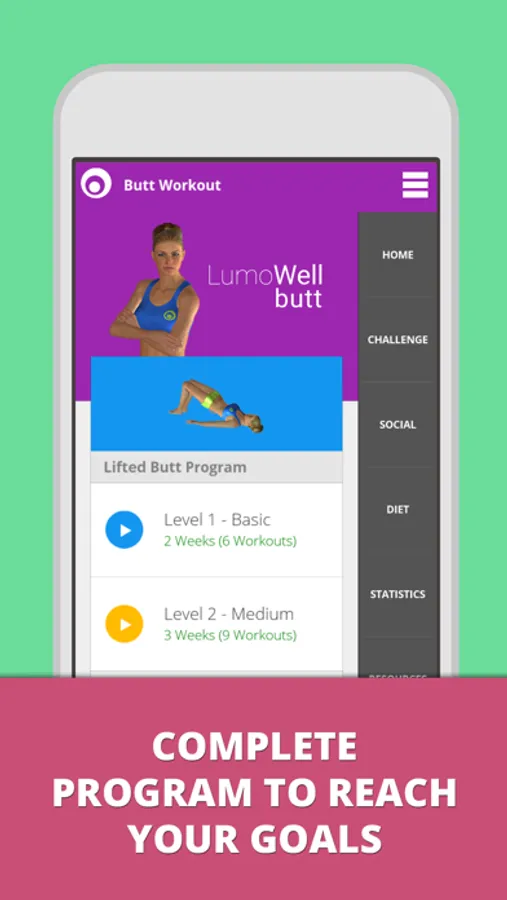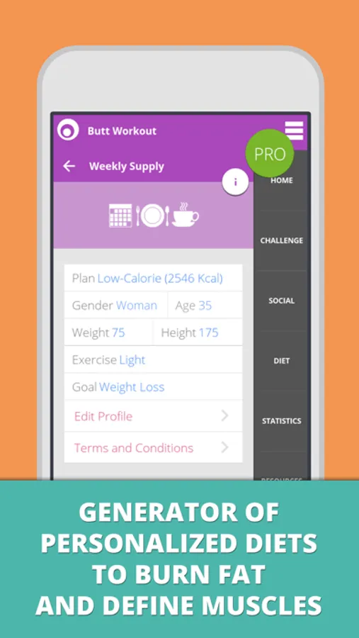To get a toned round butt as soon as possible, it’s important to follow a healthy diet. By unlocking the premium version of the glue training program you will have a meal generator to burn fat and tone muscles.