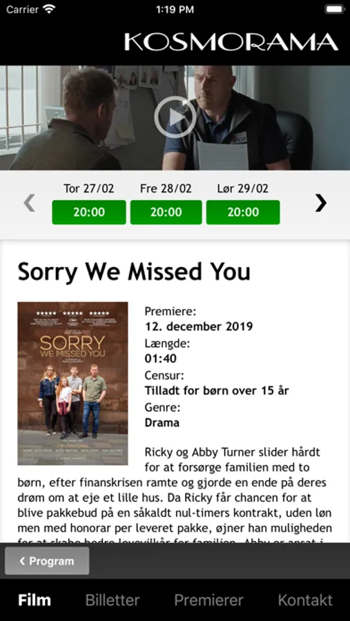 Med denne app har du mulighed for at gennemse programmet for Kosmorama, samt se yderligere filminformationer som trailer, censur, medvirkende skuespillere, varighed m.m.