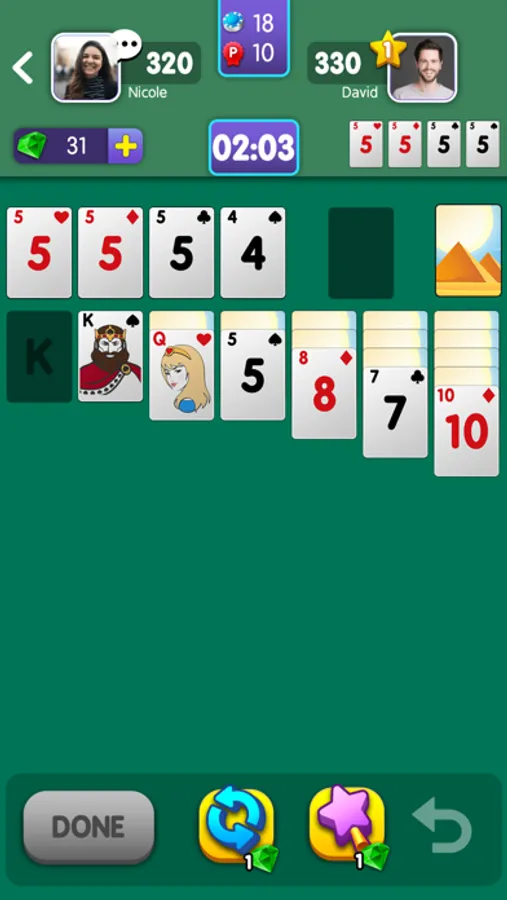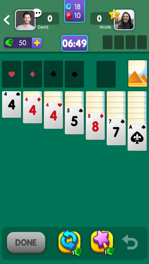 While playing live with other opponents in Solitaire Wonders, you are able to see their progress real-time, a feature which makes the game even more competitive and fun!