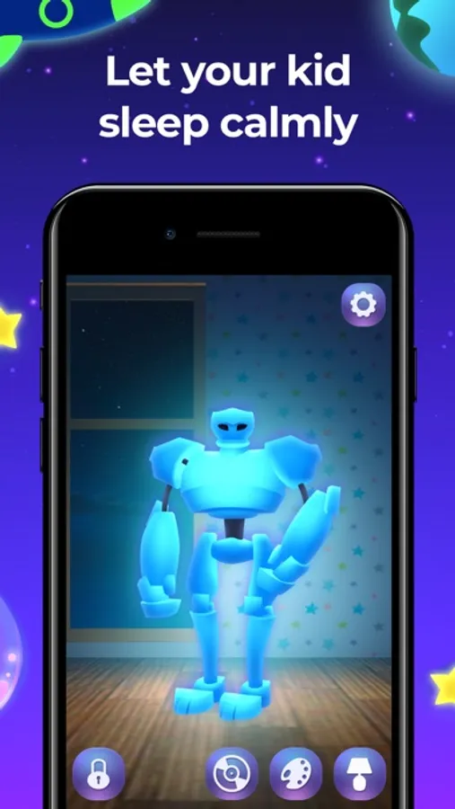 Select any shape and colour of the lantern. Switch on a pleasant melody to create an atmosphere of serenity. Set a timer if necessary and sleep well.