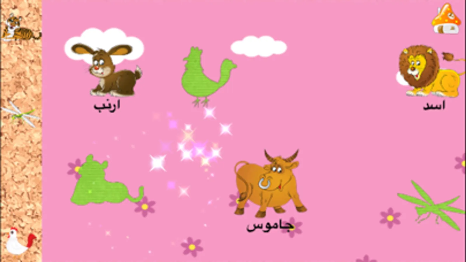 حيث يقوم بعرض الاحرف ونطقها وربطها برسومات وصور للحيوانات مع
