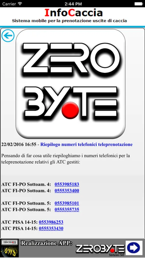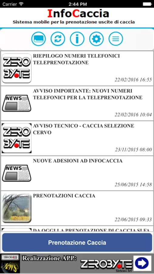 App per la visualizzazione delle notizie per i cacciatori e prenotazione uscite di caccia