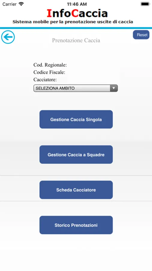 * Possibilità di prenotazione uscite di caccia per gli AMBITI abilitati.