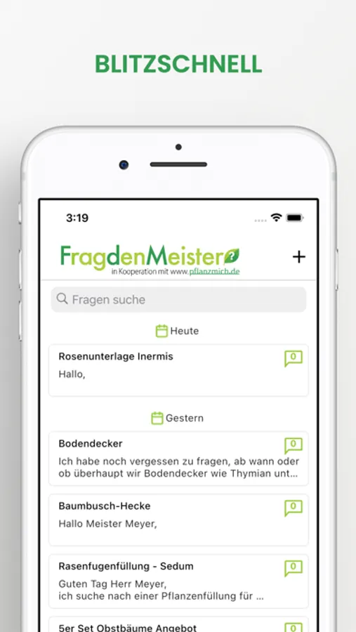 Blitzschnell bekommst du eine persönlich verfasste Antwort von Meister Meyer selbst oder jemandem aus seinem fachkundigen Gärtner-Team.